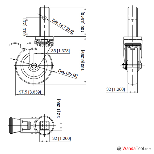 5"×1.25"方桿式棚架輪腳手架腳輪一種輕型腳手架用腳輪,主要用于商場超市貨架用腳輪,室內(nèi)裝潢用腳手架腳輪。實心方桿棚架輪腳手架腳輪采用方桿式裝配設(shè)計,主要用于方管系列產(chǎn)品,安裝方便快捷,設(shè)計合理。黑色橡膠輪面,經(jīng)濟(jì)適用,有利于保護(hù)工作地面。