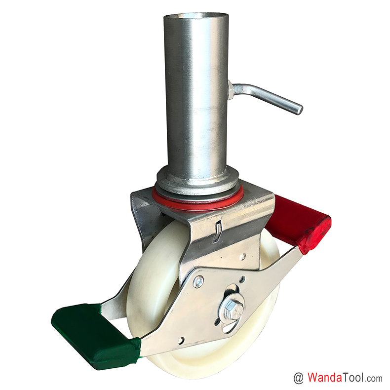 SCR 系列是符合歐盟EN1004標(biāo)準(zhǔn)的歐洲款式腳手架腳輪,適配外徑48.3mm腳手架鋼管系列,是萬(wàn)達(dá)擁有自主知識(shí)產(chǎn)權(quán)的專利腳輪產(chǎn)品。(萬(wàn)達(dá)腳輪專利號(hào)CN10333206**)。根據(jù)歐盟EN標(biāo)準(zhǔn),當(dāng)萬(wàn)向輪被剎車制動(dòng)后,需要將萬(wàn)向輪旋轉(zhuǎn)方向被同時(shí)鎖定。萬(wàn)達(dá)SCR系列歐式腳輪專為腳手架設(shè)計(jì),擁有幾乎零偏移功能,可確強(qiáng)大的載荷性能和長(zhǎng)久的使用壽命。單個(gè)腳輪設(shè)計(jì)載荷從500 公斤*1000 公斤不等。